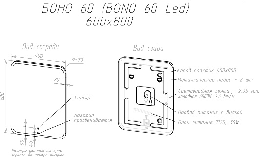- Размер (ШxВxГ): 600x800x25 мм.