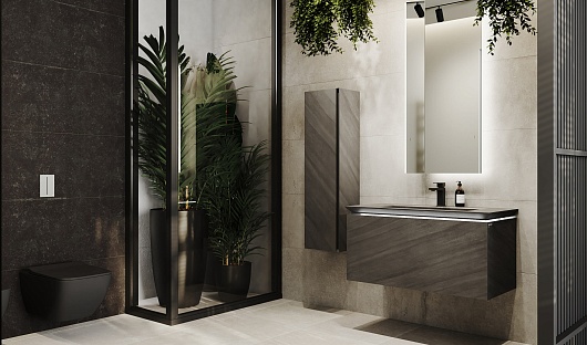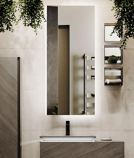 - Зеркало со створкой оснащено подсветкой по периметру и бесконтактным включением.