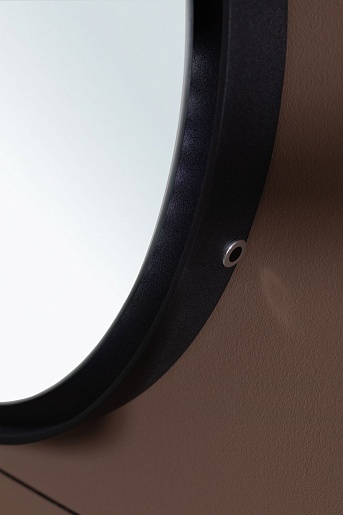 - Материал корпуса выполнен из металла в элегантном оттенке черного цвета, придающего зеркалу изысканный вид.