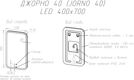 Зеркало Sintesi Jorno 40x70 - арт. SIN-SPEC-JORNO-40.
