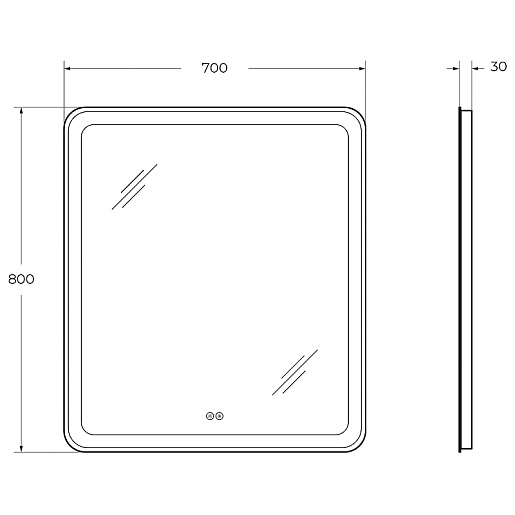 Оснащение: встроенная светодиодная подсветка по периметру, два сенсорных выключателя с диммером (регулировкой).