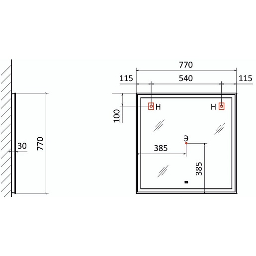 - Зеркало оснащено датчиком включения на взмах и логотипом бренда Raval с подсветкой.