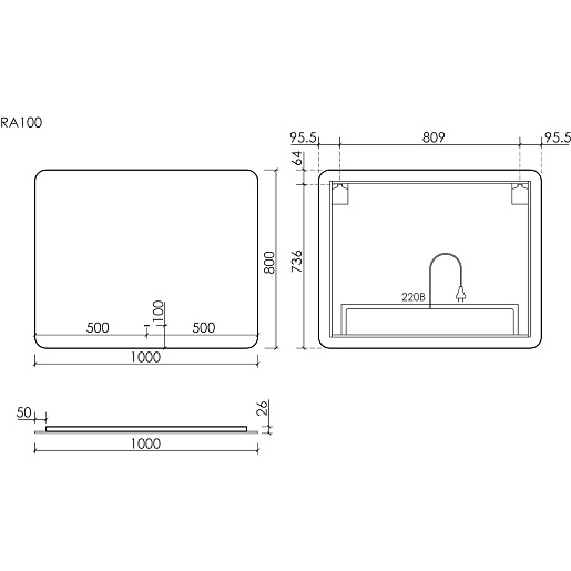 Sancos Зеркало Ray 100/80 c подсветкой RA1000