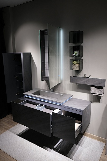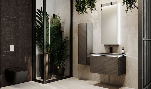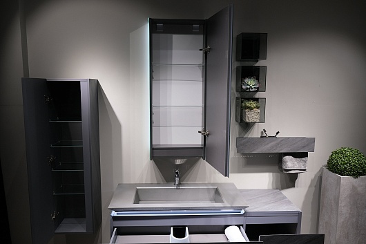 - Система хранения: распашная дверца, стеклянные полки внутри шкафа.