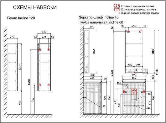 Jorno Зеркало-шкаф Incline 45 Inc.03.45/P/А/JR