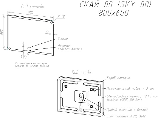 Зеркало Sintesi Sky 80x60 - арт. SIN-SPEC-SKY-80.