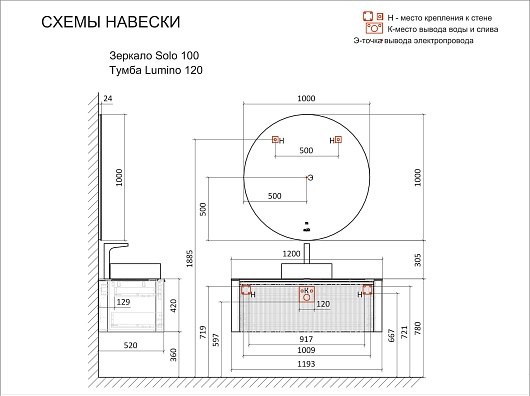 - Дополнительное оснащение зеркала: регулируемая подсветка / подвесы.