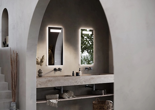 - Дополнительное оснащение зеркала: регулируемая подсветка / подвесы.