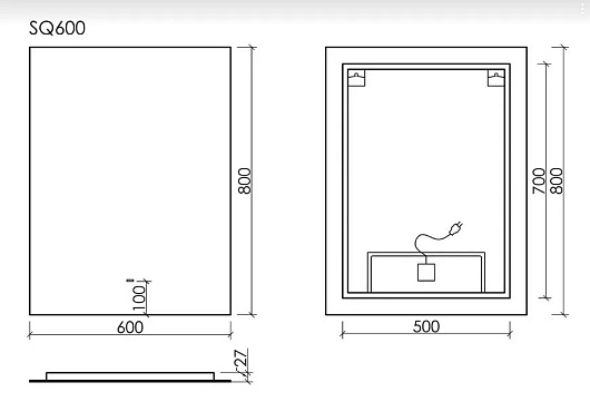 - Дополнительное оснащение зеркала: регулируемая подсветка / подвесы.