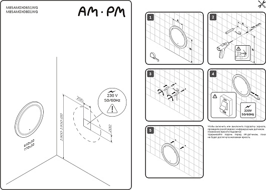 Зеркало AM.PM X-Joy 77 с подсветкой и ИК-выключателем - арт. M85AMOX0801WG.