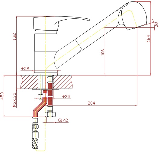 - подводка для шланга нержавеющая сталь, гибкая, 21 см.
