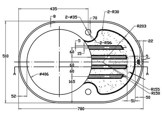 - готовых отверстий для смесителя: 2