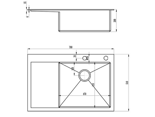 - готовых отверстий для смесителя: 2